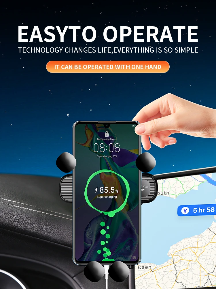 - Align bracket to screen edge, tighten clamp, position phone — ready to charge