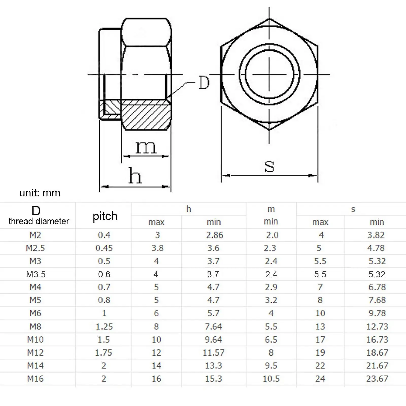 Keywords: nylon insert lock nut, 304 stainless steel locknut, self-locking locknut, black hex nut, M2 M3 M4 M5 M6 M8 M10 M12 M14 M16.