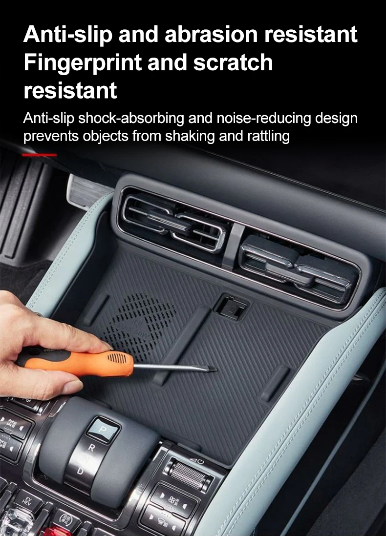 Keep your phone and small items secure, clean and charging-ready with this precision-fit silicone anti-slip mat designed for BYD Leopard 5 (2024) and Denza B5 (2023–2026). Engineered to protect the console from dust and scratches while allowing wireless charging to work seamlessly.