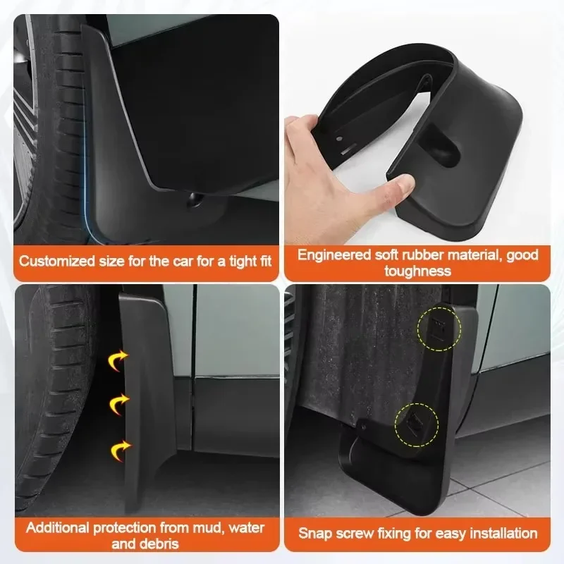 - 4 × Mud flaps (two front, two rear) — pre-shaped for left/right fit