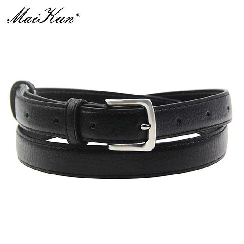 MaiKun Women’s Skinny Leather Belt — Solid Color Pin Buckle, Small Size