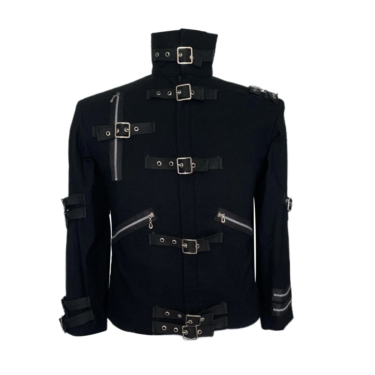 Bring the energy of MJ’s iconic BAD era to your next performance or event. This black stretch cotton punk jacket is designed for impersonators, tribute artists, and fans who want authentic style, stage-ready comfort, and rugged punk attitude.